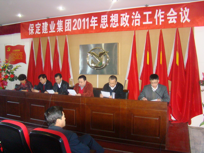 2011年3月8日,保定建業集團有限公司2011年思想政治工作會議在莊嚴的國歌聲中拉開了序幕,會議由黨委辦公室主任馬亞軍主持,集團各公司黨、政、工、團、婦、武裝、保衛負責人參加會議。